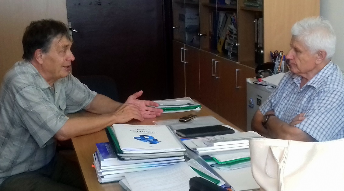 Доц. Иван Иванов (вдясно). Обсъждане на план за изследвания.